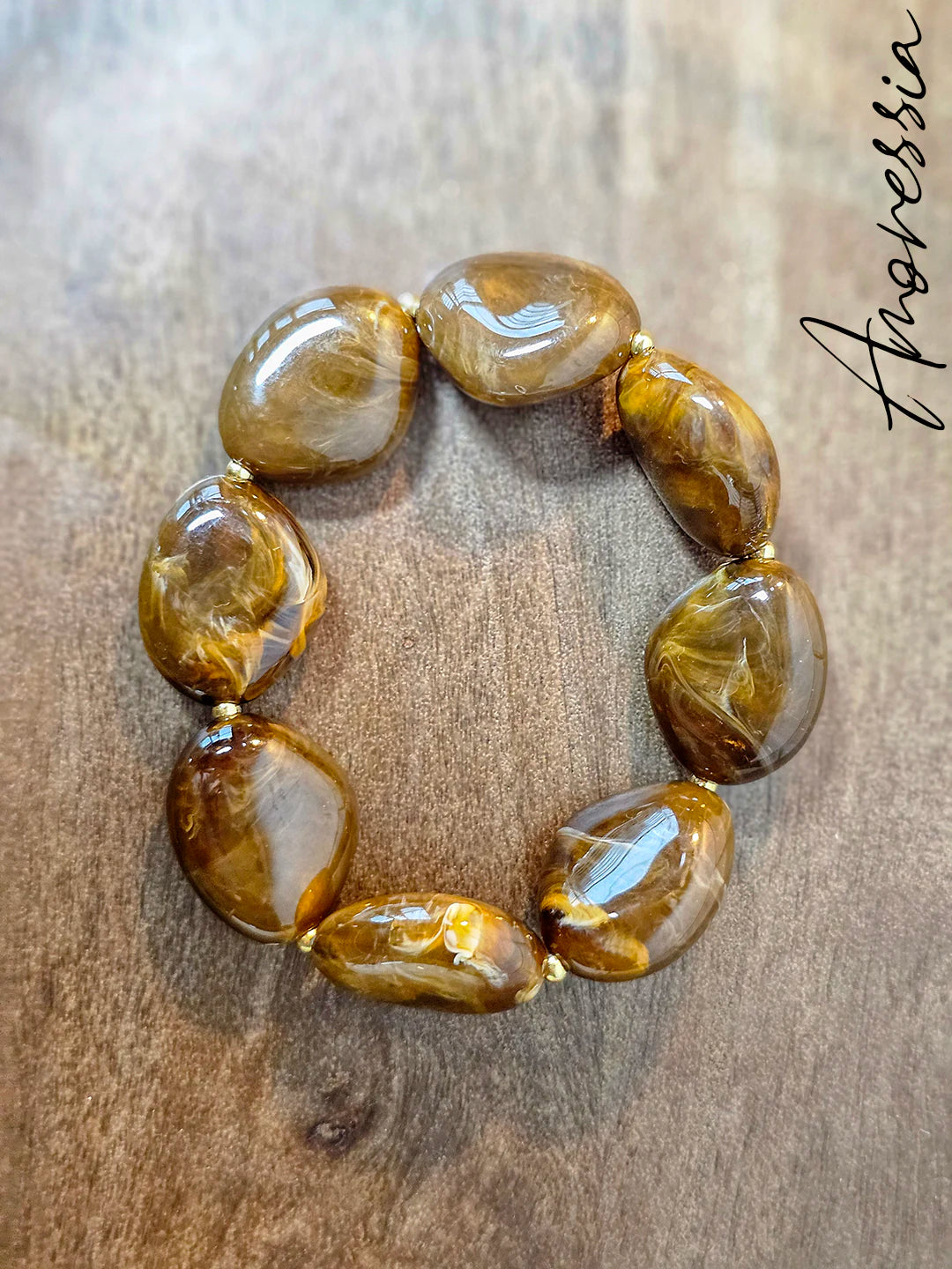 Un bracelet chic et raffiné qui combine résine marron et touches dorées pour un style élégant et facile à porter 💛