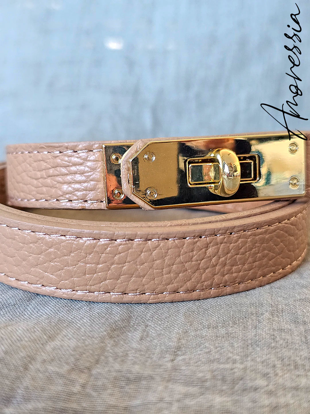 Ceinture Cuir Beige Fermoir Doré