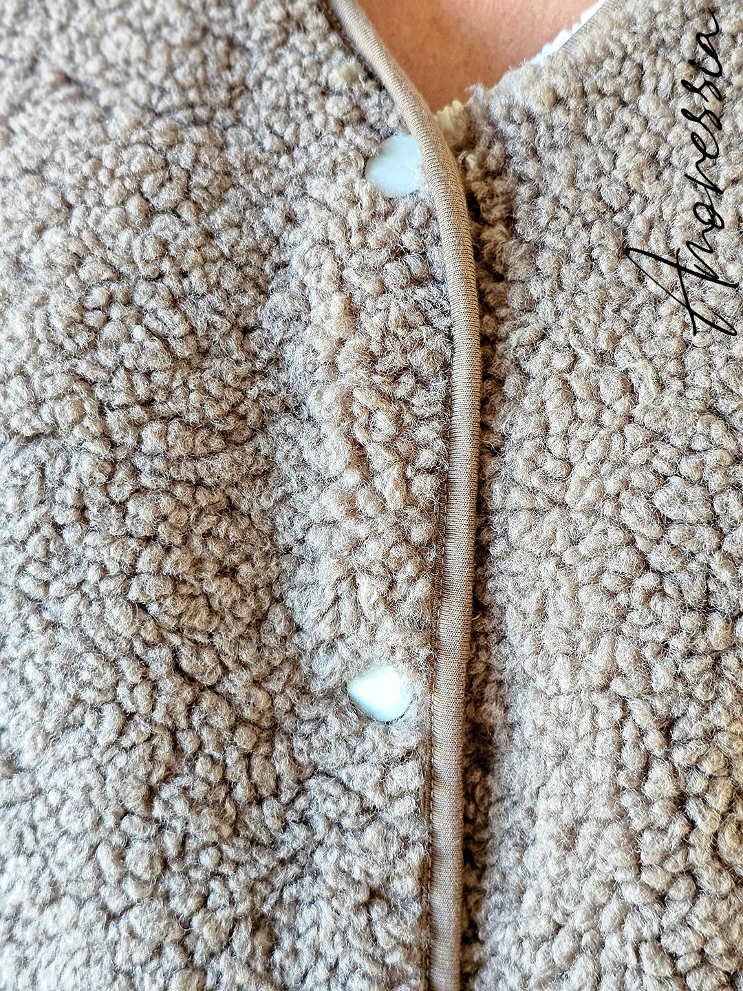 Apportez chaleur et style à vos looks avec ce gilet sans manches en sherpa taupe.