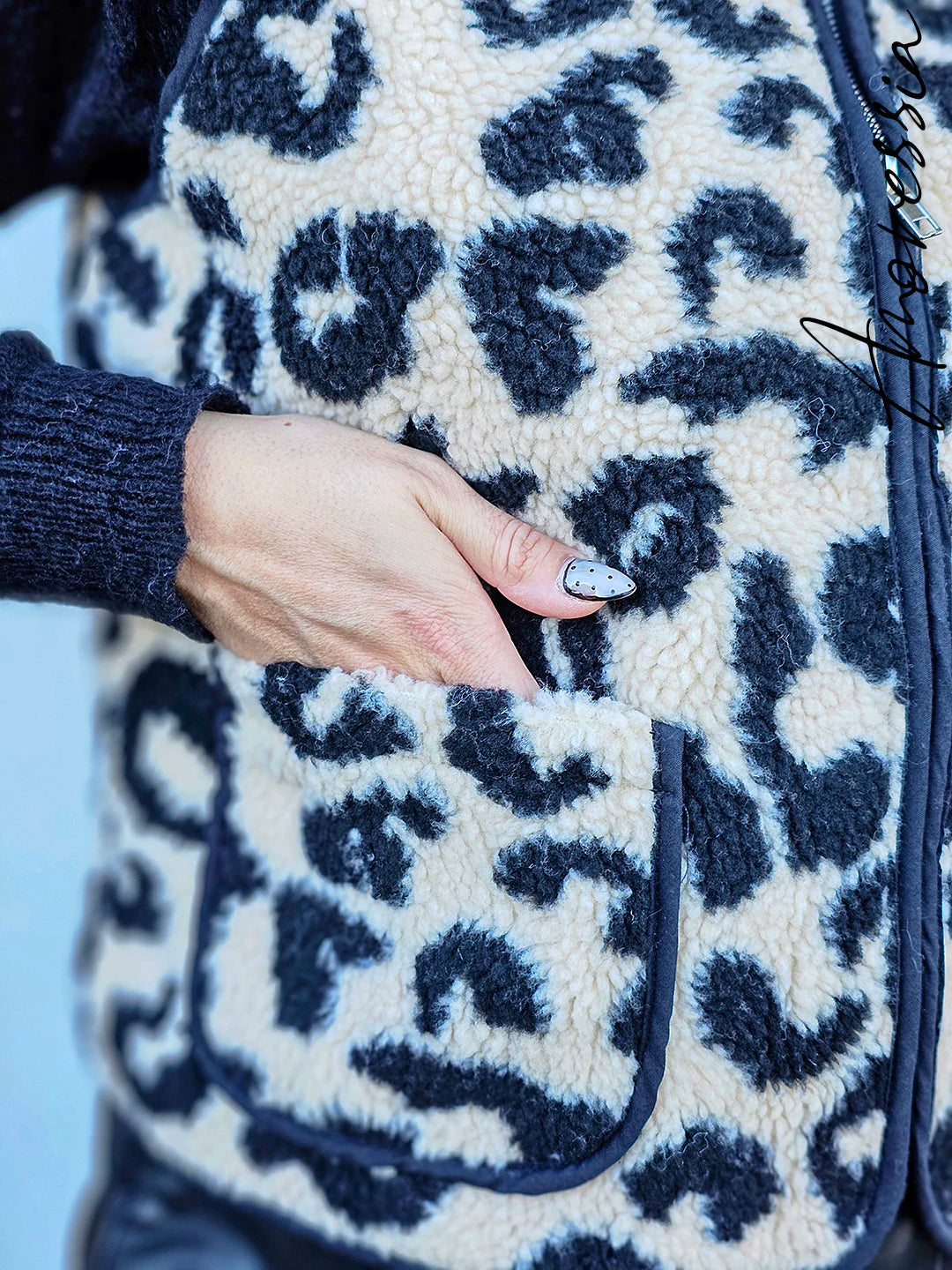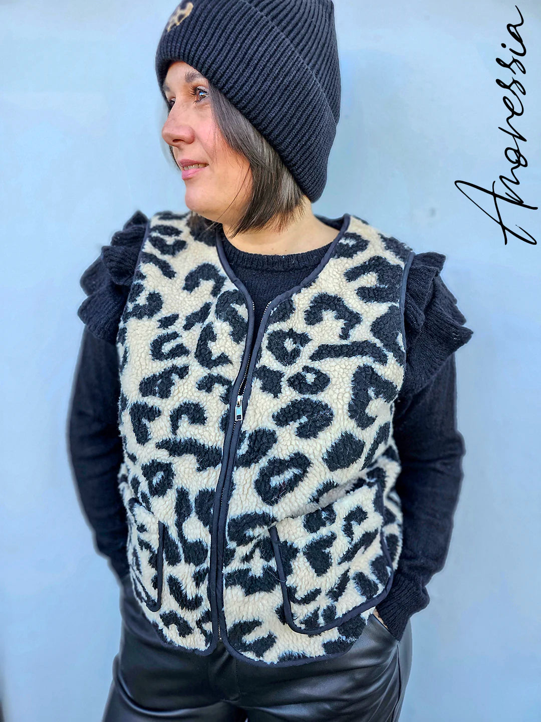 Apporte une touche sauvage et tendance à ton look avec ce gilet sans manches léopard en sherpa beige et noir 🖤🤎