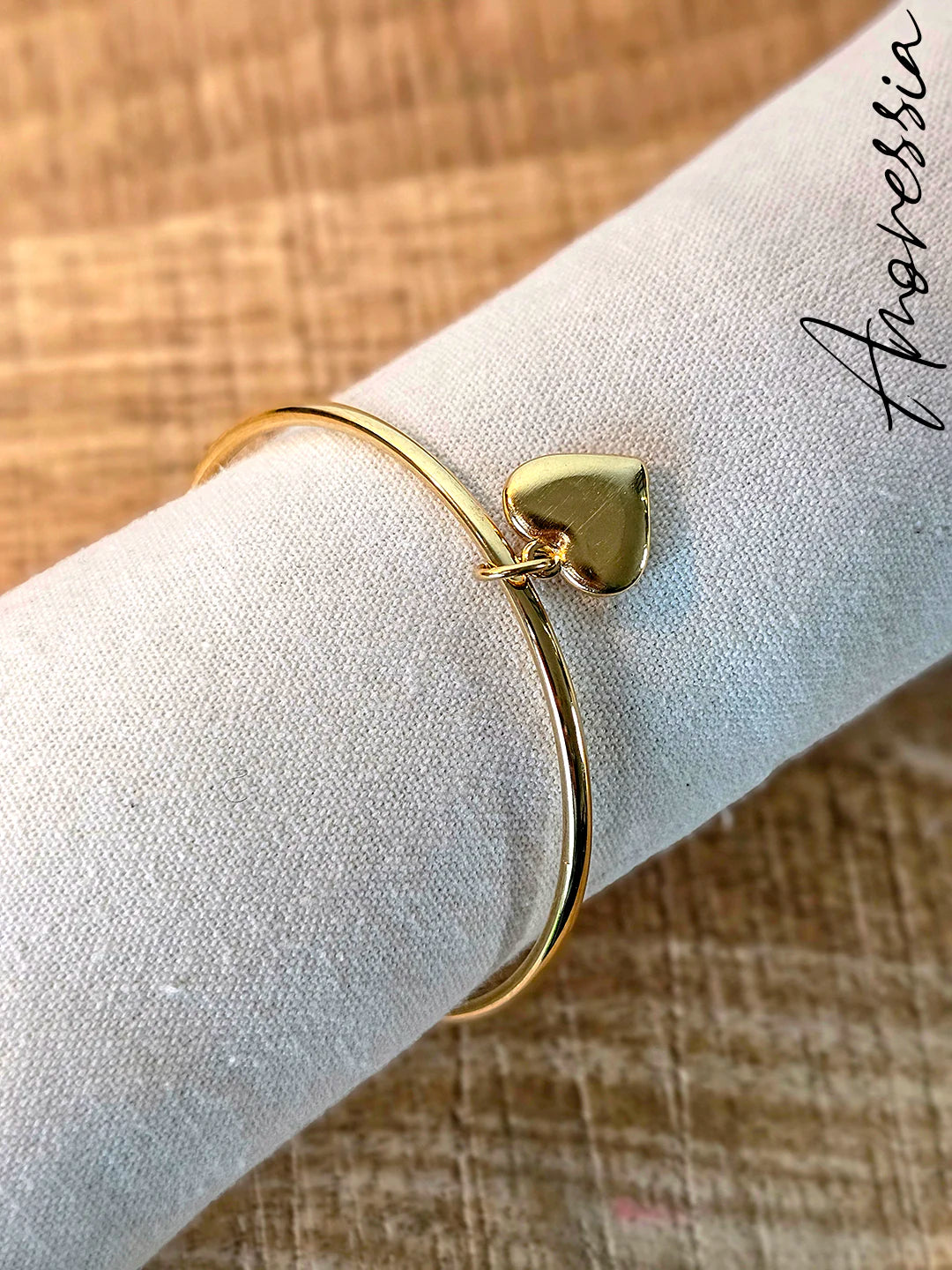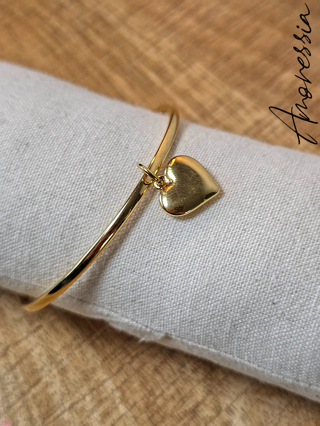 Craquez pour ce jonc doré délicatement orné d’une breloque cœur, symbole d’amour et de féminité. Élégant et intemporel, il se porte aussi bien seul qu’en accumulation pour sublimer toutes vos tenues.