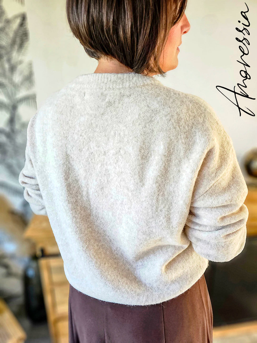 Avec son col rond intemporel et ses manches longues, il s’adapte à toutes les saisons. Sa matière douce et chaude, enrichie en laine et en viscose, assure un confort agréable tout au long de la journée.